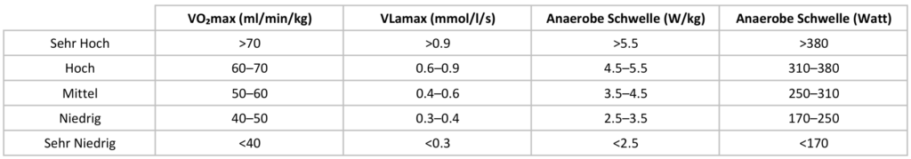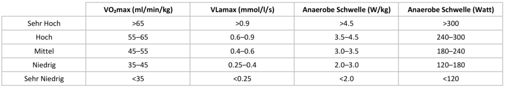 Hohe VLamax (0.6-0.9 mmol/l/s): Strassenradfahrer (Sprinter), Mountainbike-Cross-Country-Fahrer, Mittelstreckenläufer, Sprintdistanz Triathlon